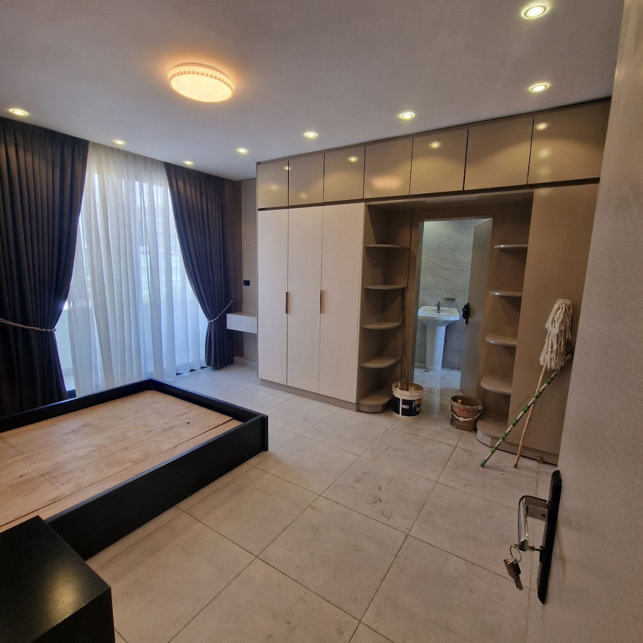 🍳 Kitchen: Spacious closed kitchen with modern fittings 🧺 Laundry & Iron Room: Dedicated household utility space 🛋 Living Space: Open and airy design with natural light 🌿 Balconies: Living room, master bedroom, and one additional bedroom each with private balcony 🚗 Parking: Assigned underground parking 🛗 Elevator: Available in the building 💧 Utilities: 24/7 water supply 🔒 Security: 24/7 security service 🌟 Status: Luxury apartment in a calm, upscale neighborhood